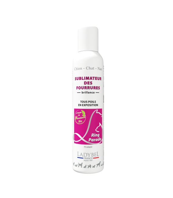 Faire une vaporisation légère quelques minutes avant la présentation, afin de parfaire le toilettage de l'animal.